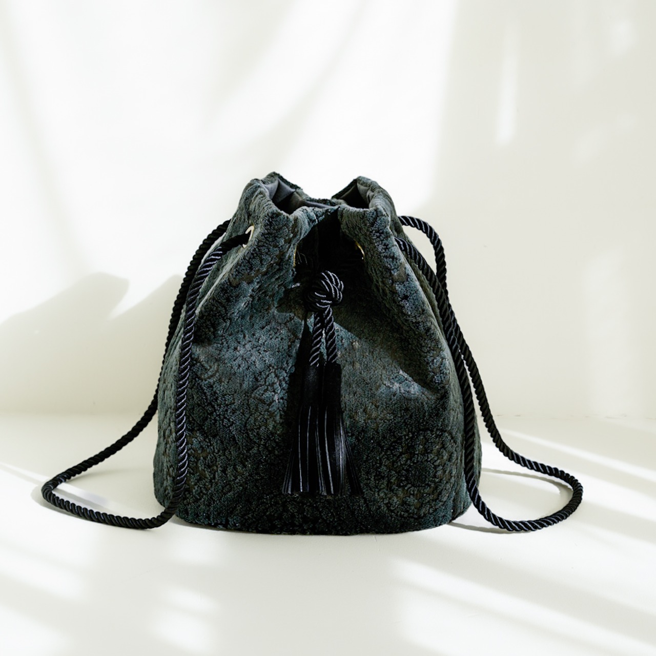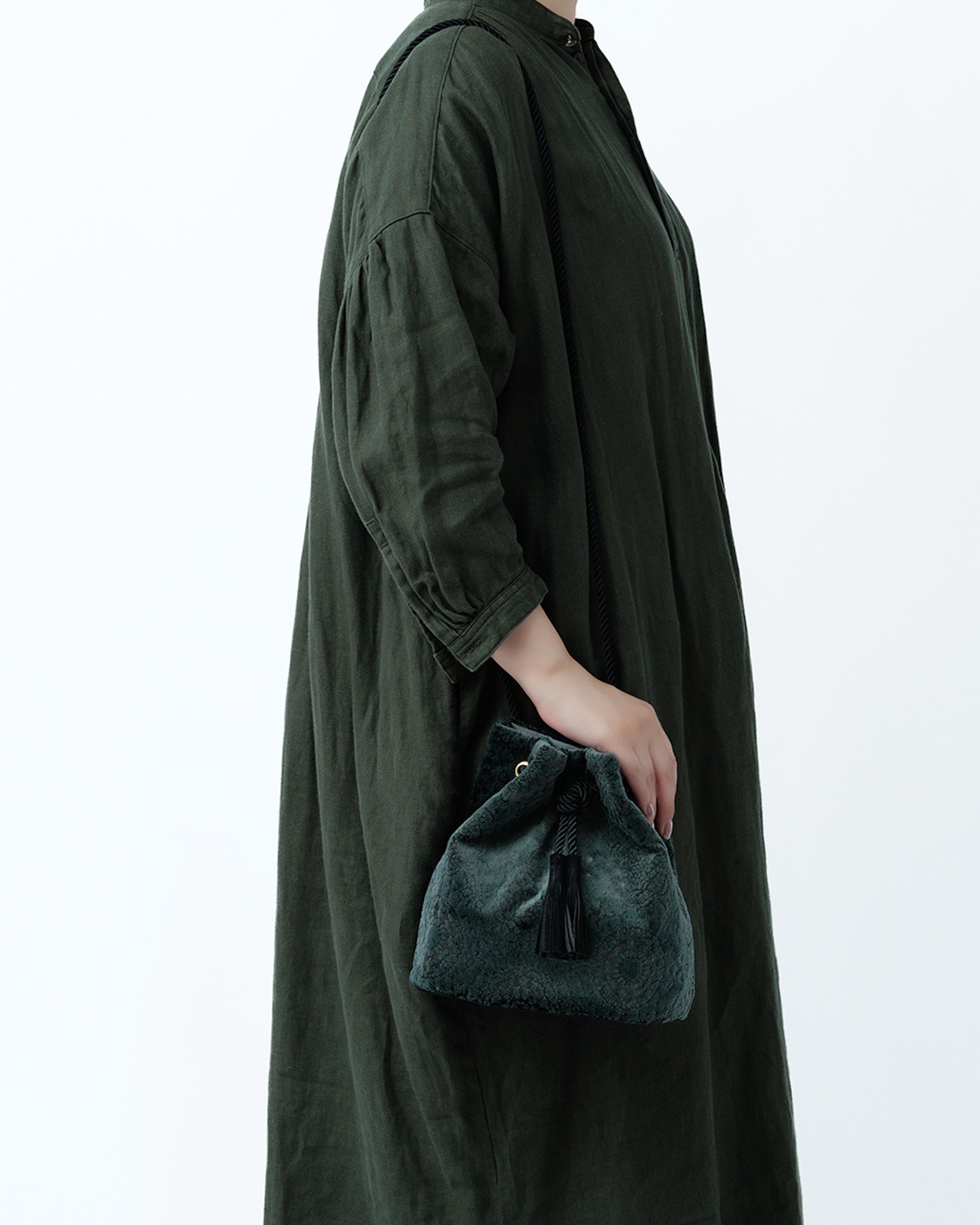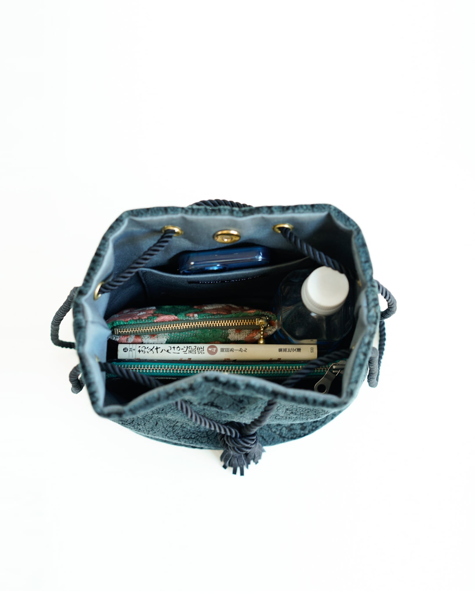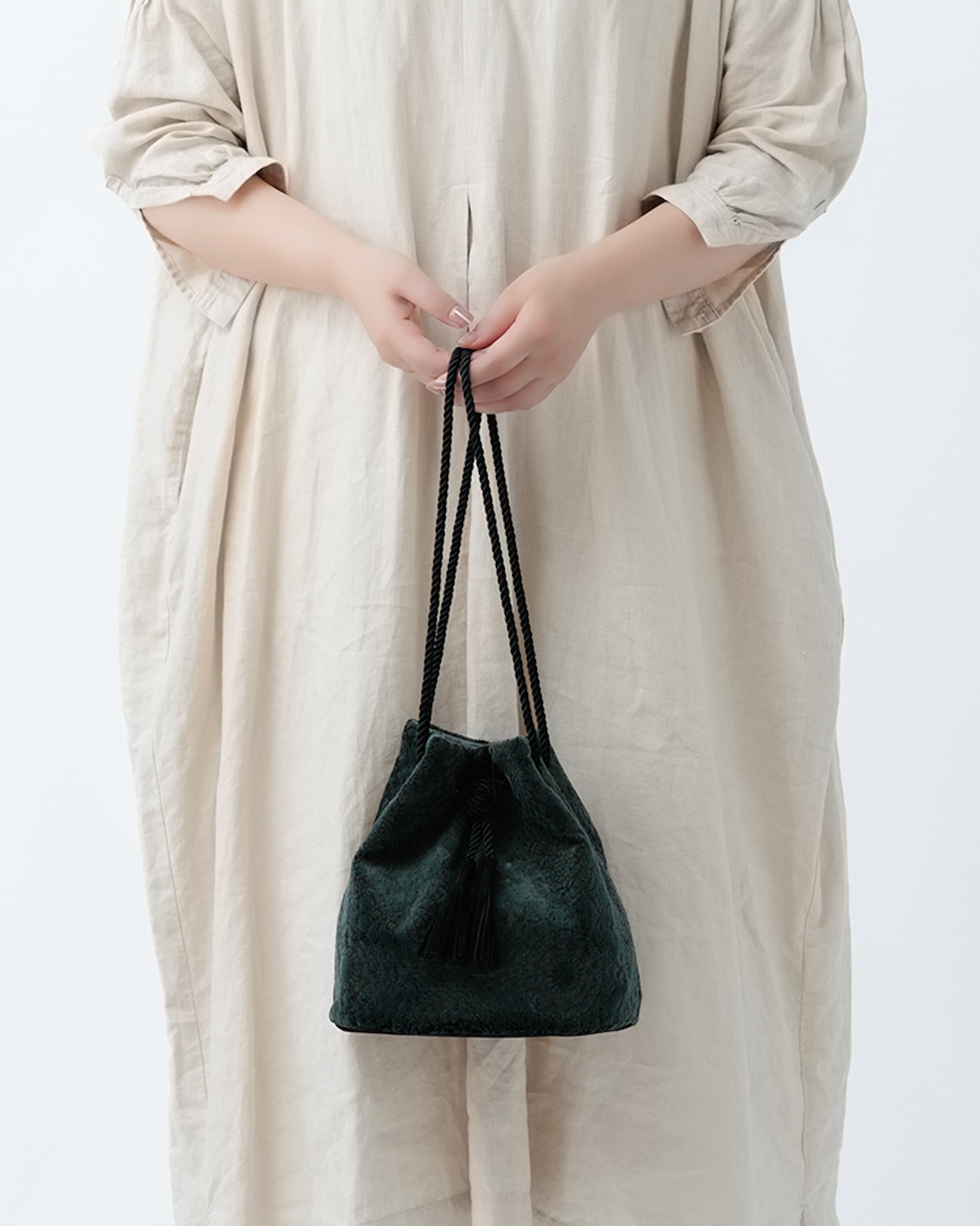 巾着として持つだけでなく斜め掛けや肩掛けができる。