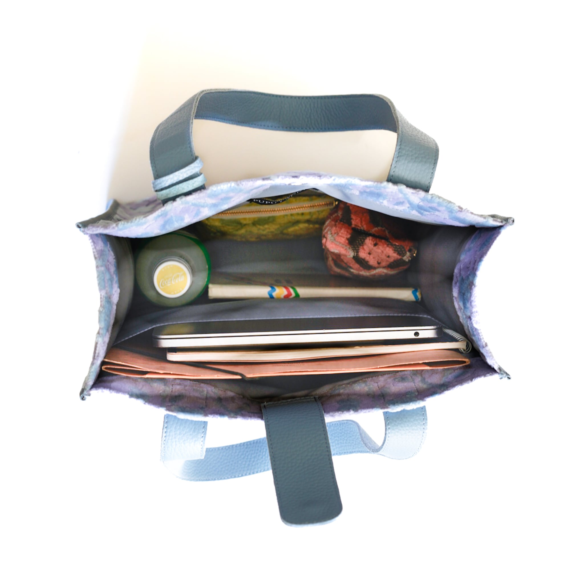 13インチのノートパソコンや、A4サイズの書類ファイルもすっぽり収まる縦型トート。