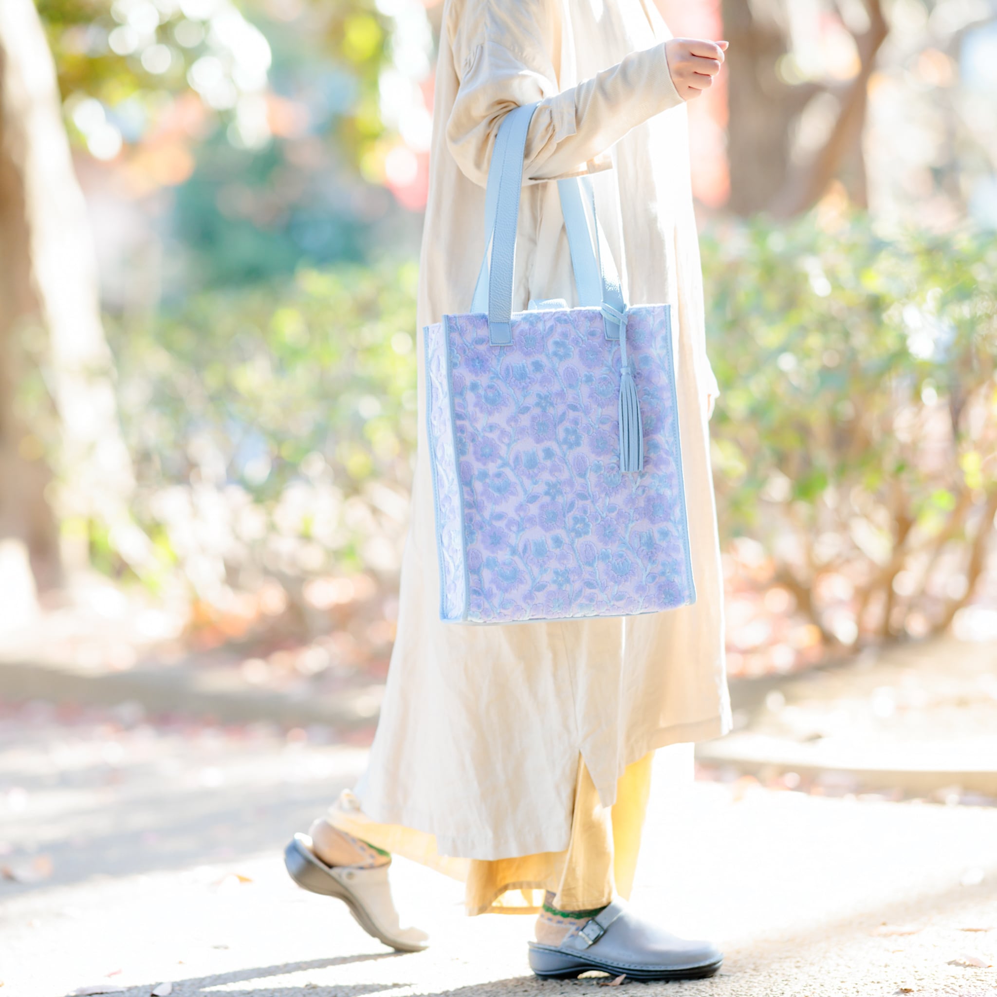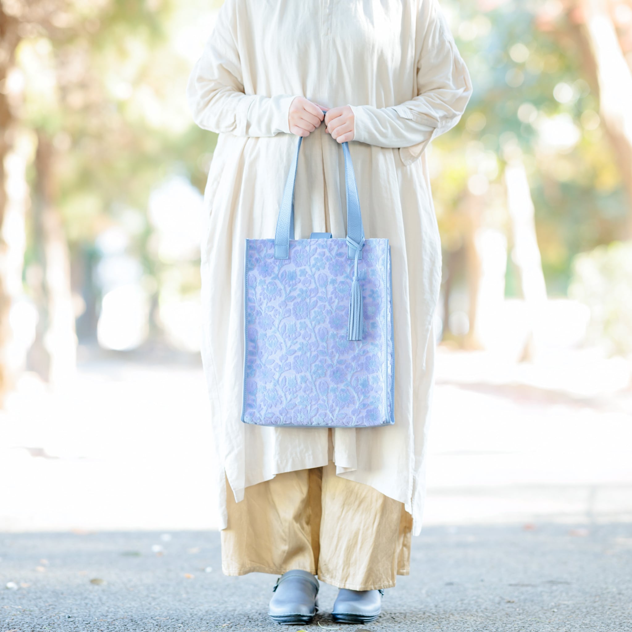 和歌山県・高野口で織られた金華山織物を使用し、仕立てたトートバッグです。
