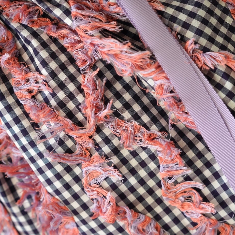 ギンガムチェックにリズミカルなフサフサが並びます。