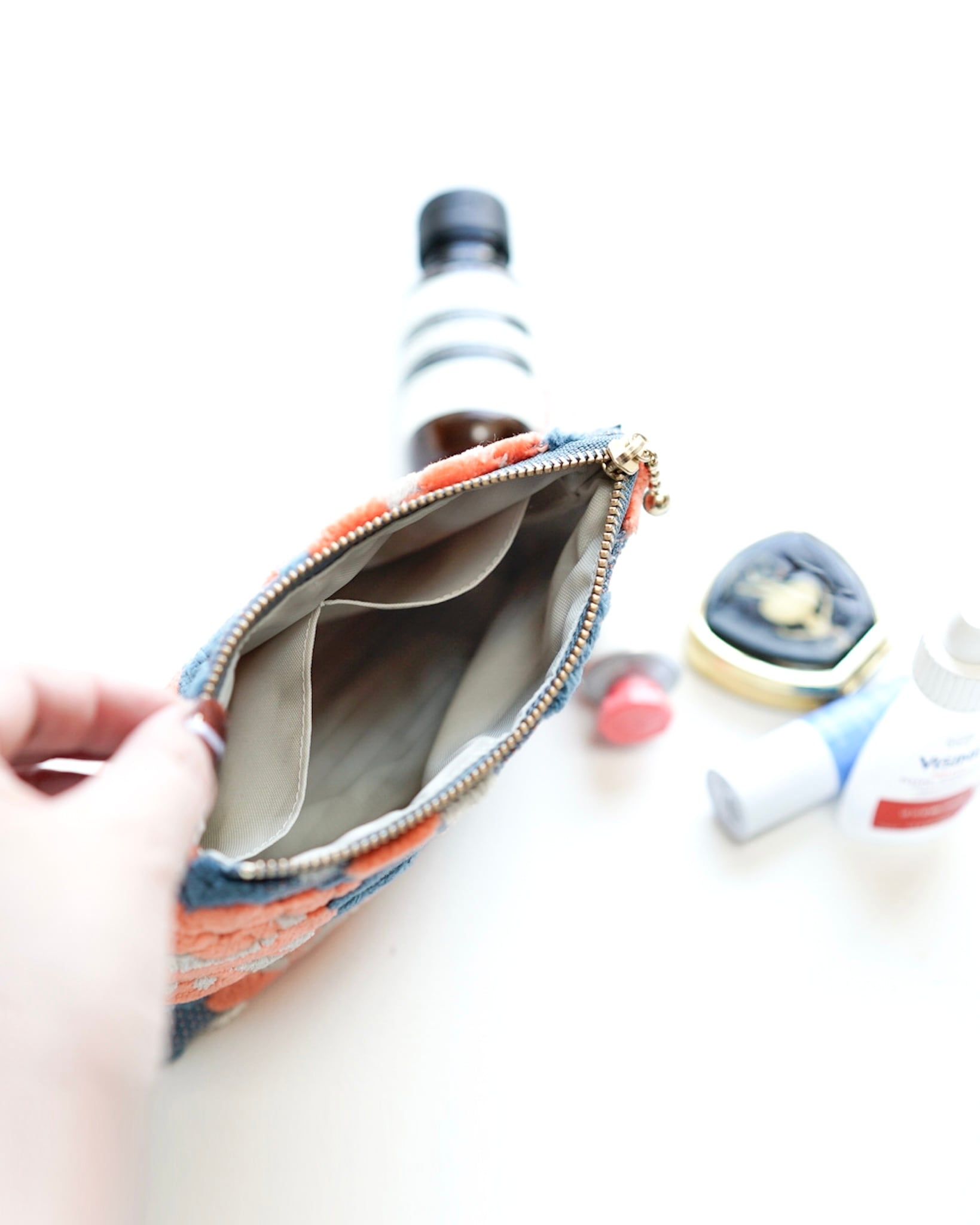 コスメや常備薬、ティッシュ、充電器やイヤホンなどのモバイルグッズなどなど、カバンの中で行方不明になりがちなものたちの整理に。