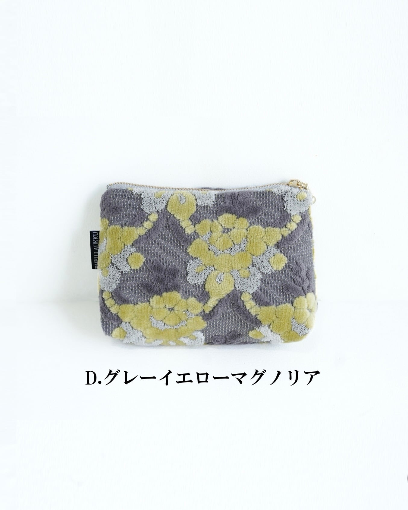 金華山巾着でおなじみの金華山織(きんかざんおり)で、コロンとしたポーチを作りました。
